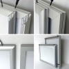 Der Leuchtrahmen kann auf allen vier Seiten mit Hilfe des 30mm Klemmprofils aufgeklappt werden, ideal für ein schnelles und bequemes Austauschen von Dia-Drucken oder Postern.