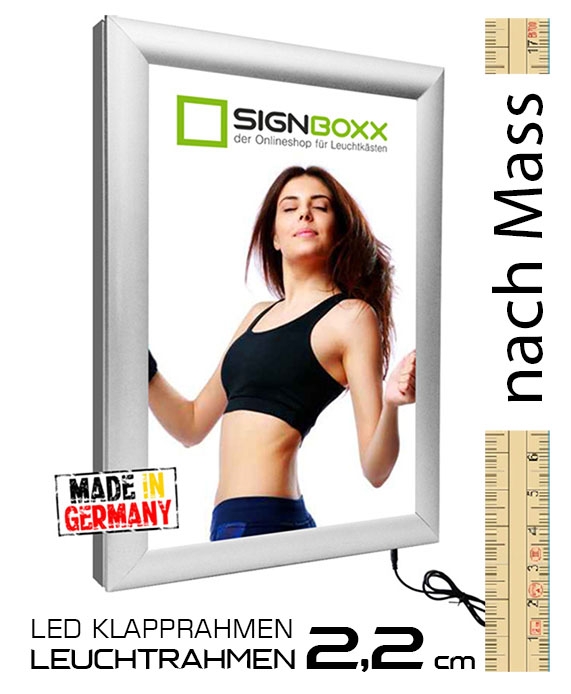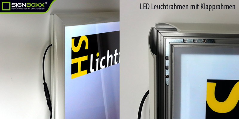Flacher LED Leuchtrahmen einseitig mit Klapprahmen und 22mm Tiefe - nur für Innenanwendung.
