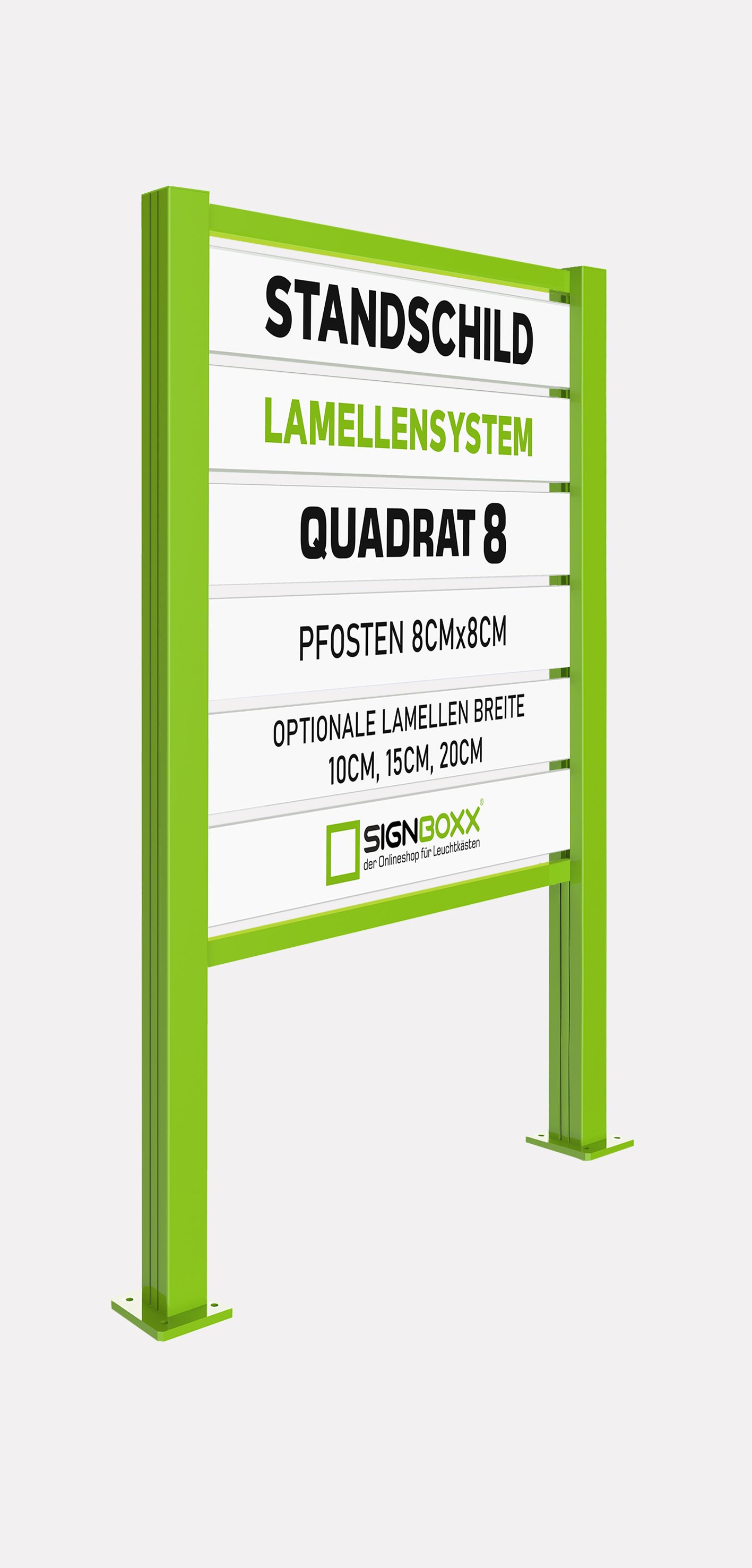 Hier können Sie die Lamellenhöhe auswählen (10cm,15cm, oder 20cm) und Lamellen Anzahl.Wegen der Füßen-Höhe ist die Werbefläche 5 cm weniger, z.B. 100 cm Werbefläche wird 95 cm sein.